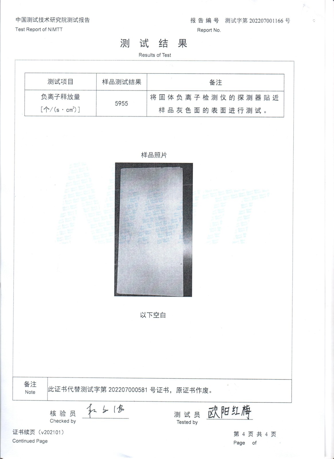 板康負氧離子養生畫釋放負氧離子檢測報告